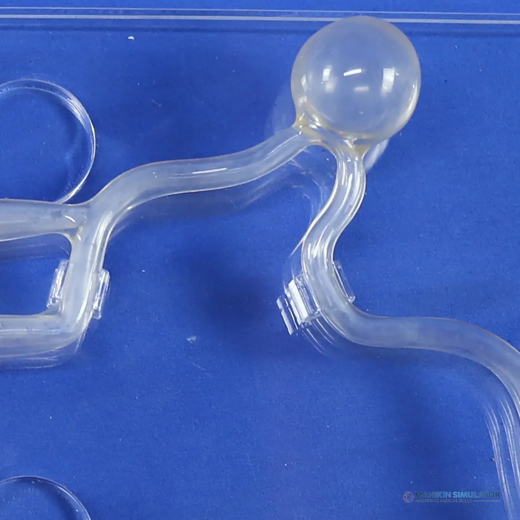 Arterial aneurysm model secara akurat mereplikasi struktur anatomis dan ukuran arteri karotis serta aneurisma, dirancang khusus untuk pengujian dan pelatihan instrumen intervensi vaskular. Model ini mendukung pengujian operasi instrumen seperti kateter, kawat pemandu, dan *spring coils* (koil embolisasi).