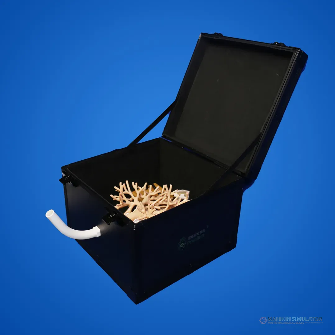 | Features | 1.Based on CT data of Chinese individuals, the six-level bronchial anatomy is reconstructed at a 1:1 ratio, with the inner diameter of the terminal segment being ≤2mm, closely fitting clinical scenarios. 2.High molecular silicone rubber + ultrasonic imaging material, providing a highly realistic tactile and echo effect, matching the texture of clinical operations. 3.Covering EBUS-GS diagnosis, biopsy, and basic operation training, while taking into account both basic and advanced skill requirements. The lesion block can be replaced and adapted to multiple branches for repeated use, reducing training costs and ethical risks. |