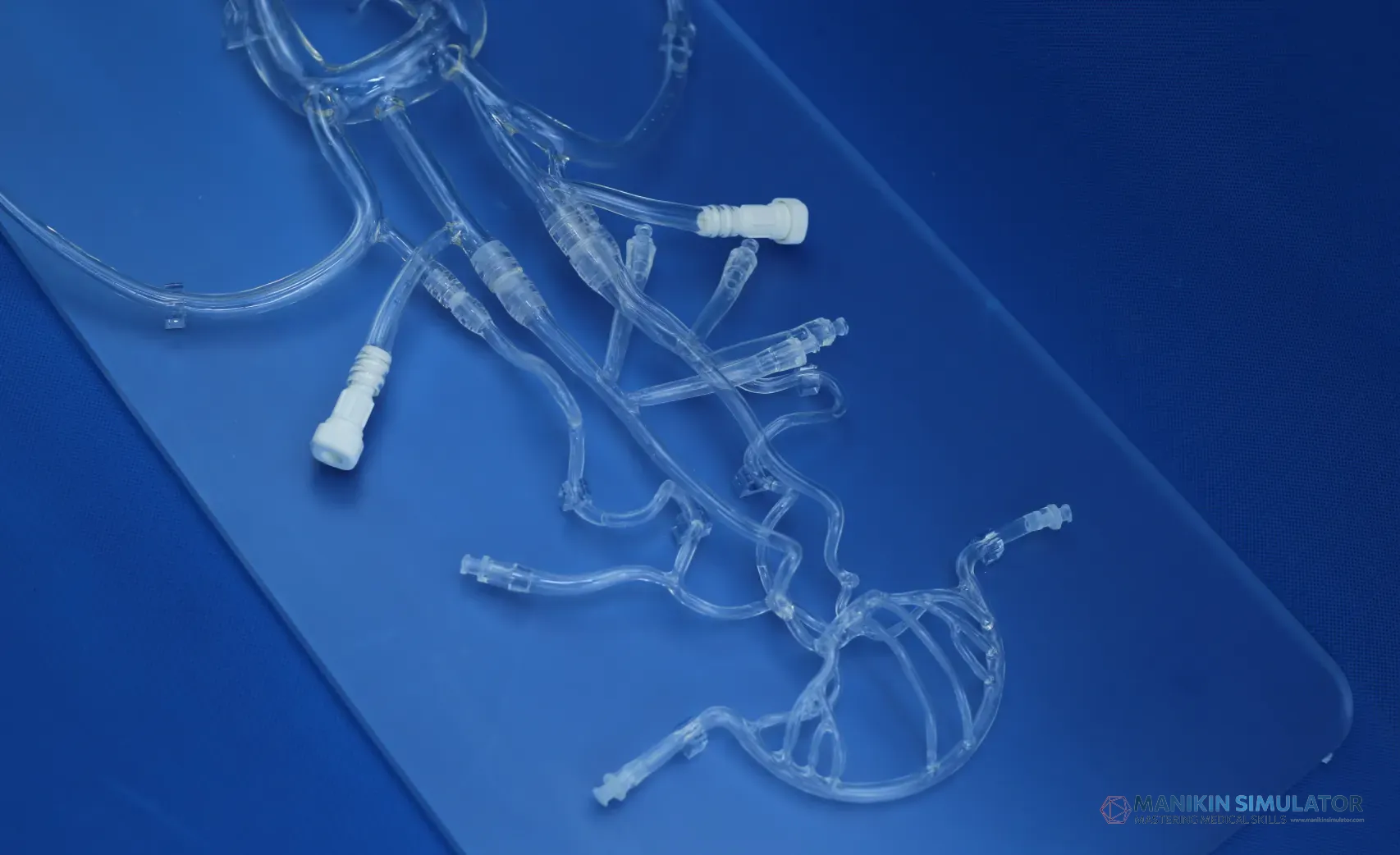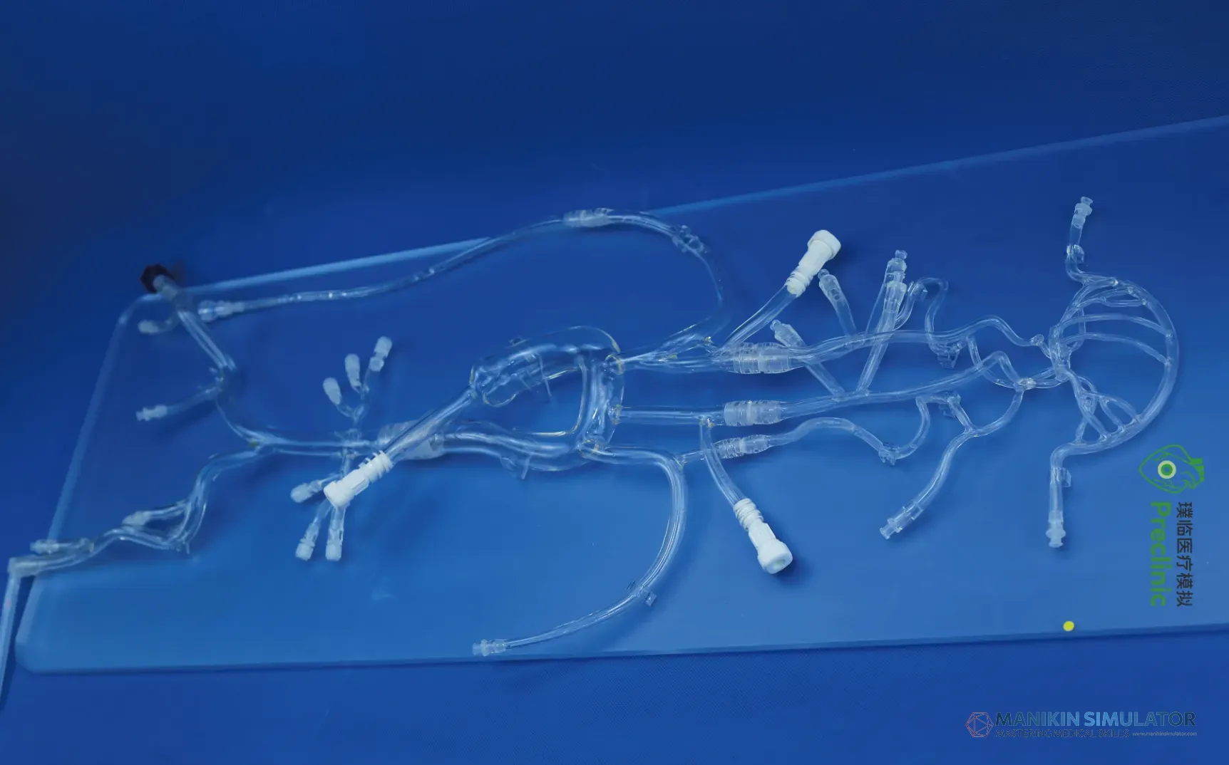 Neurovascular Operation Training Model-Type C didesain dengan struktur planar 2D yang efisien namun tetap anatomis 1:1. Mengacu pada data CT klinis untuk mereplikasi ukuran lumen arteri intrakranial secara presisi.