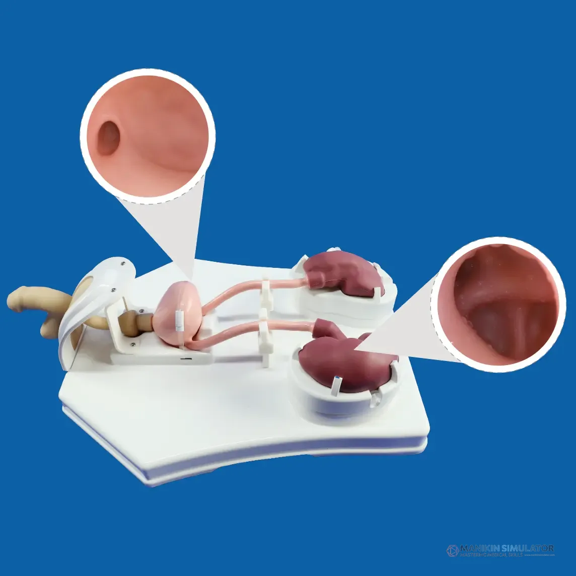| Features | ● Based on CT/MRI data from Chinese individuals, we have reconstructed the complete urinary system structure, including the penis, urethra, bladder, ureter, and kidneys, with a 1:1 scale, ensuring that the dimensional parameters align with clinical reality; ● Made of food-grade silicone material (with a testing certificate provided), it highly simulates the human body in both visual and tactile senses; ● Supporting the operation of various instruments such as cystoscopes and ureteroscopes, it can be used for training in various urological surgeries such as lithotripsy, catheterization, stent implantation, etc. |