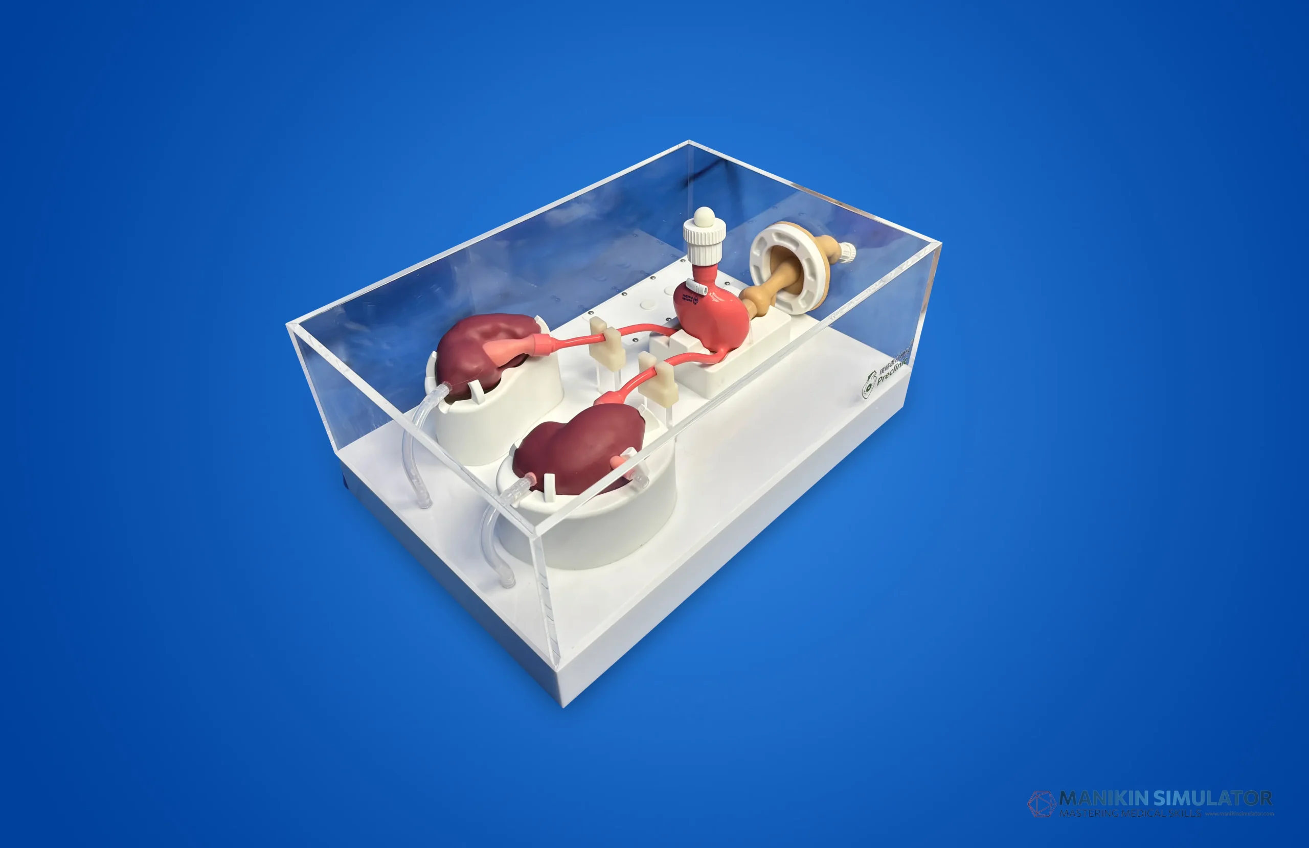 Desain *all-in-one* ini memudahkan pengaturan di meja pelatihan tanpa selang eksternal yang berantakan. Tetap mempertahankan anatomi silikon ginjal-ureter-kandung kemih yang superior untuk pelatihan URS/RIRS.